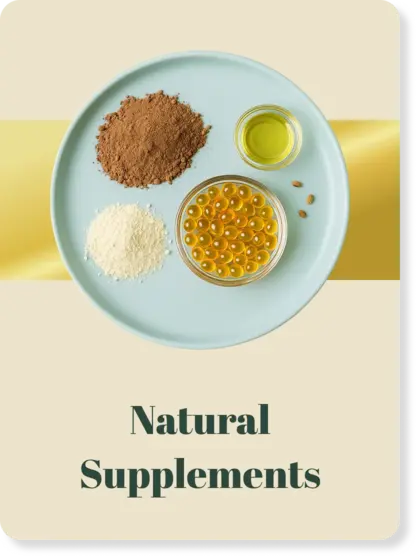 Natural supplements such as Omega-3 & Omega-6 oils, prebiotics, probiotics, and collagen