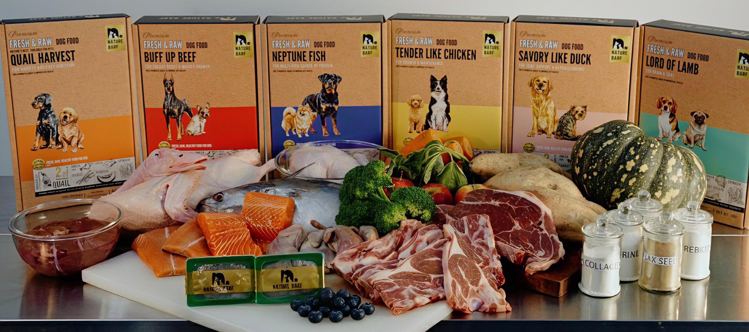 BARF stands for Biologically Appropriate Raw Food — a feeding philosophy that provides pets with fresh, uncooked, natural ingredients, similar to what their ancestors ate in the wild. A typical BARF diet includes: